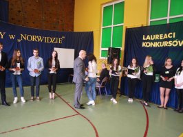 Następnie wicestarosta Waldemar Białowąs oraz dyrektor Powiatowego Urzędu Pracy w Świdniku wręczyli nagrody w konkursie plastycznym "Mój wymarzony zawód" zorganizowanym przez szkolnego doradcę zawodowego Annę Kołodziejczyk oraz w "Międzyszkolnym konkursie wiedzy o krajach anglojęzycznych" zorganizowanym przez Małgorzatę Bronisz.