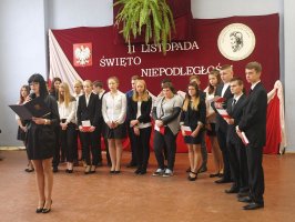 W 98 rocznicę tego święta w Zespole Szkół Nr 1 im. Cypriana Kamila Norwida klasa I Tż pod kierunkiem wychowawczyni Małgorzaty Prandoty, z ogromnym zaangażowaniem przygotowała niezwykłą uroczystość, podczas której uczniowie zaprezentowali wybrane przez siebie pieśni patriotyczne oraz przypomnieli najważniejsze fakty historyczne z tym związane.