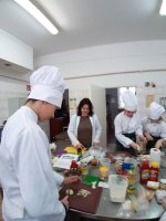 Uczennice naszej szkoły Justyna i Ewelina Olech dzielnie pomagały gościom, zdradziły tajniki wiedzy gastronomicznej, pod czujnym okiem nauczycieli przedmiotów zawodowych. Było bardzo miło i "smacznie", a efektem pracy były pyszne babeczki oraz pizza. Zajęcia pokazały, że jest to świetny pomysł połączenia nauki z zabawą.