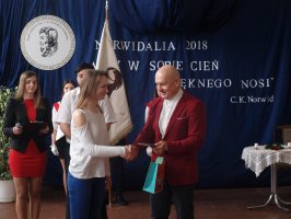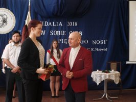 5.W kategorii „Największa aktywność społeczna” tytuł otrzymała Aleksandra Studzińska z klasy IV Technikum w zawodzie technik logistyk, za wyjątkową postawę w latach 2015-2018, pełne zaangażowanie w życie szkoły