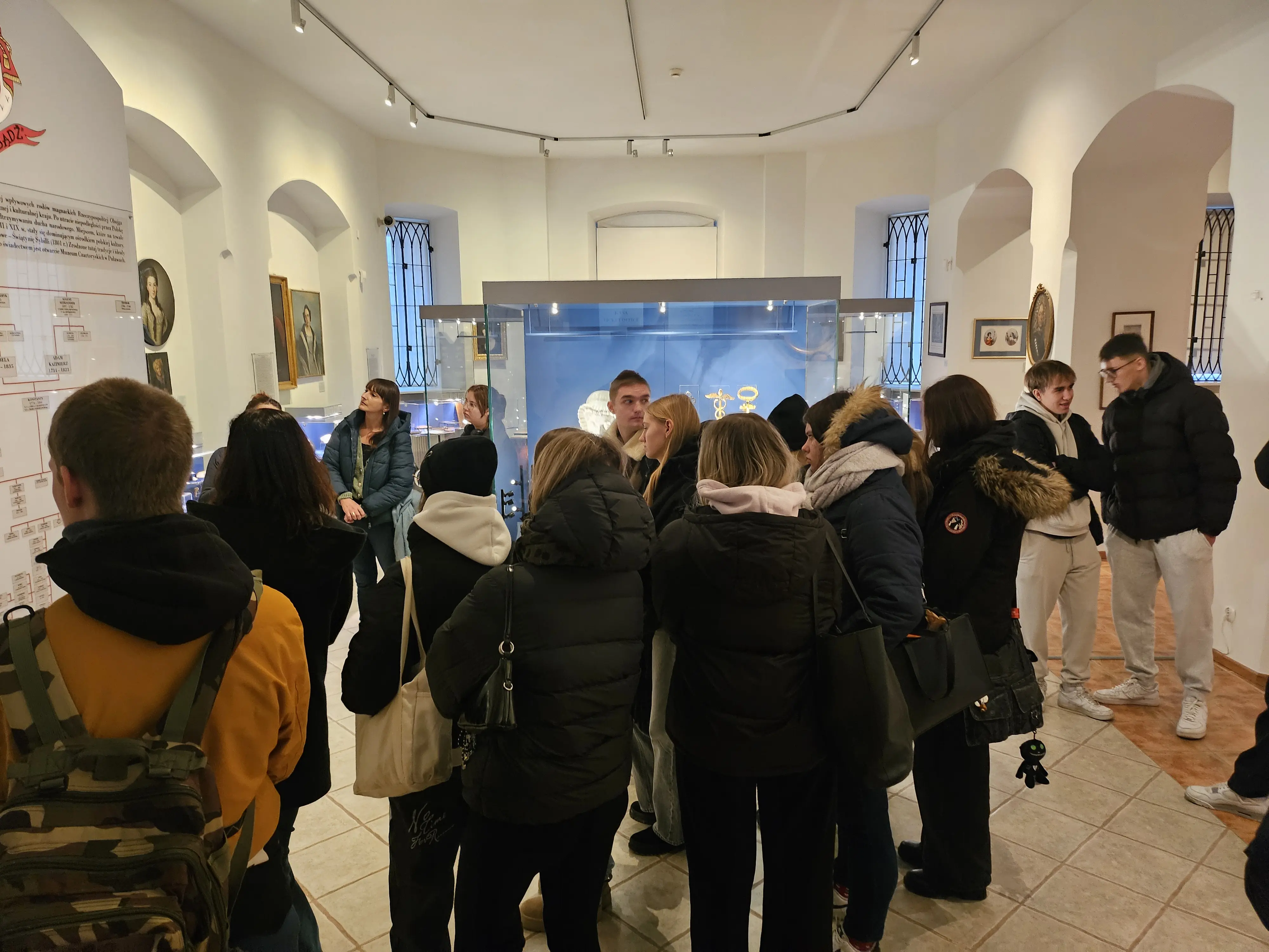 15.12.2025 r. uczniowie z klasy 5 Tż i 4 Tlb w ramach programu Ministerstwa Edukacji Narodowej ,,WYJŚCIE Z KLASĄ” mieli możliwość poznania ciekawych miejsc dziedzictwa narodowego Lubelszczyzny - Muzeum Czartoryskich w Puławach, gdzie odbyła się lekcja muzealna na temat potężnego polskiego rodu książęcego Czartoryskich oraz Muzeum Sztuki Złotniczej w Kazimierzu Dolnym, gdzie mieliśmy możliwość obejrzeć film przedstawiający warsztat pracy złotnika oraz wystawę eksponatów sztuki złotniczej. Widzieliśmy przepiękne przykłady sztuki sakralnej, zastawę stołową oraz różnego rodzaju biżuterię.