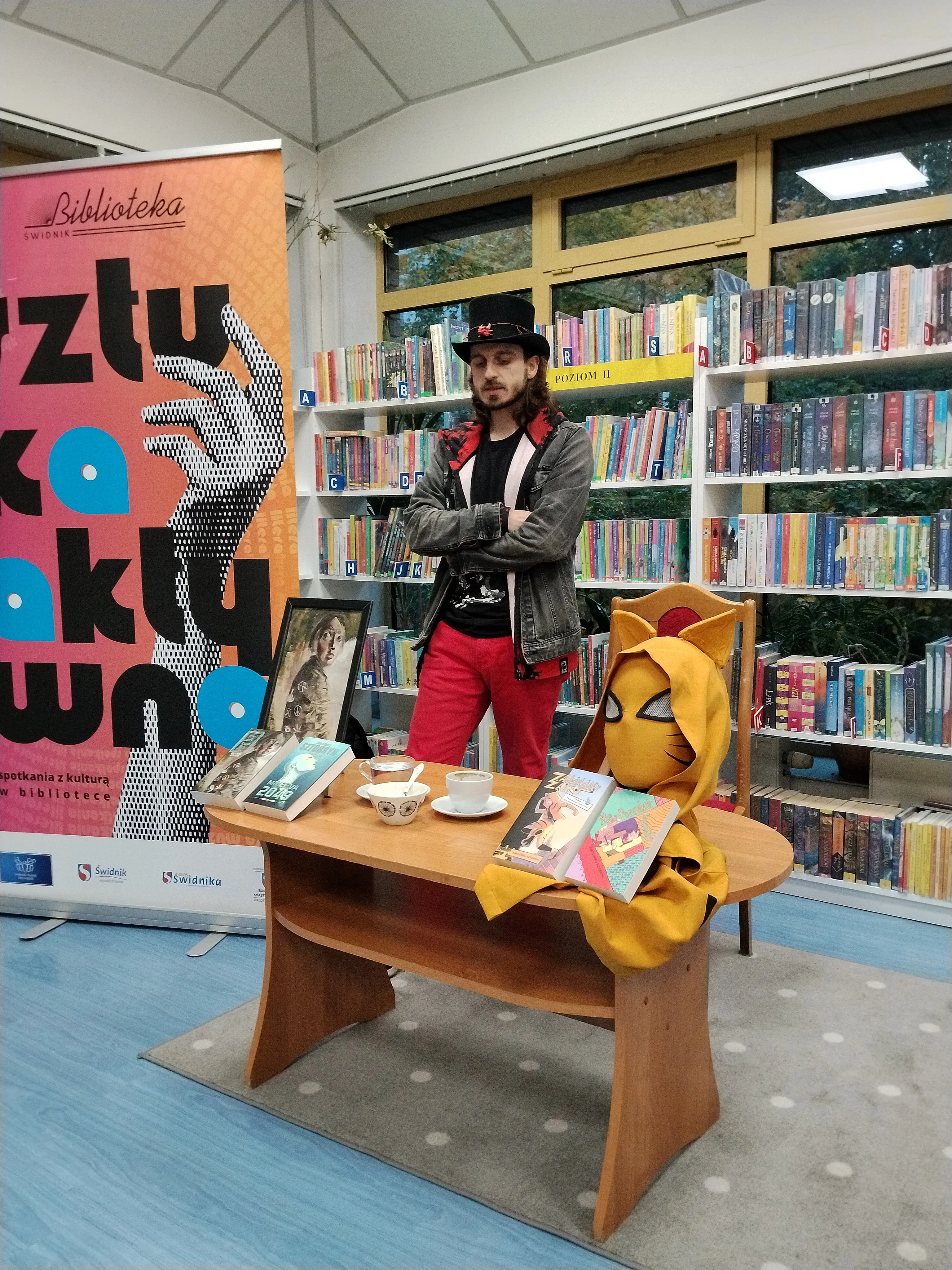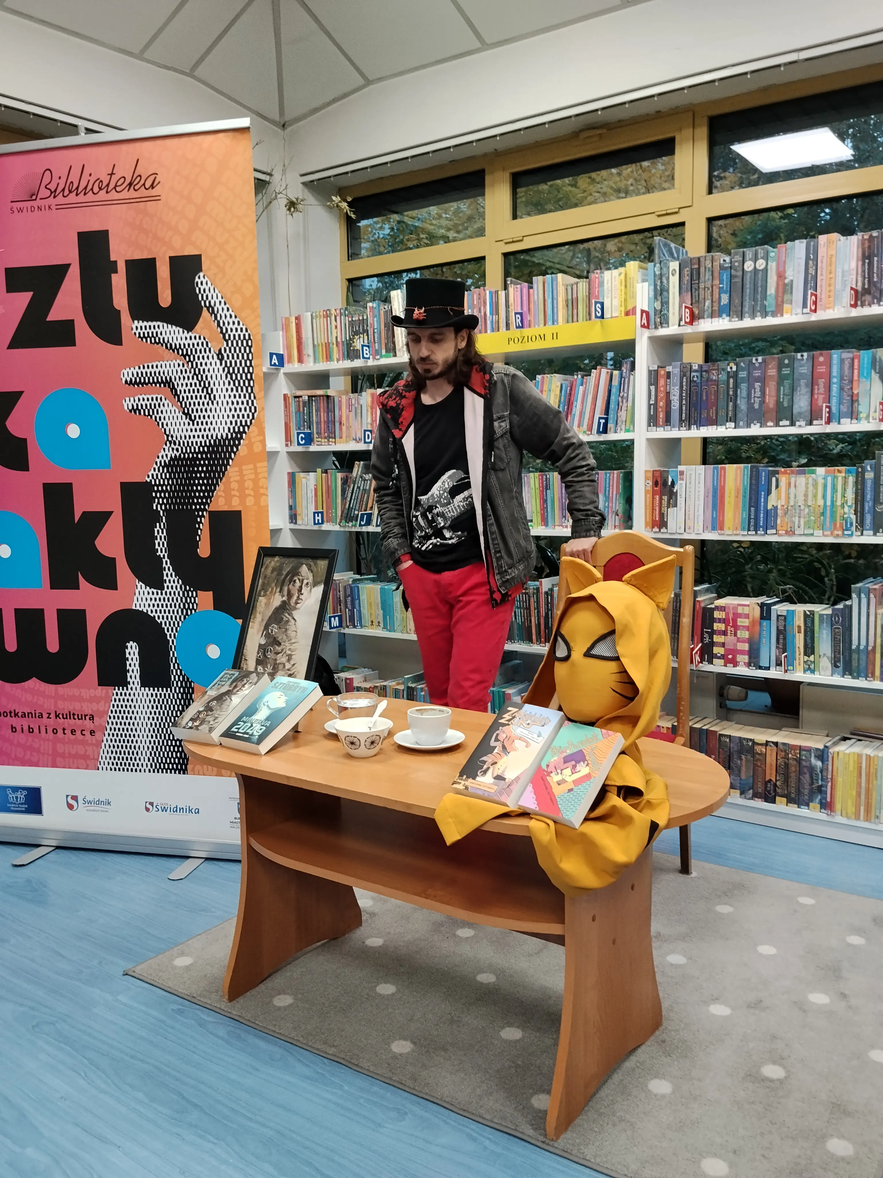 Pani Aleksandra Majewska, kierownik placówki, opowiedziała o tym, w jaki sposób Bartłomiej Sztobryn trafił do Świdnika: „Dawno temu, spotkałam Esterę, którą zapytała, czy moglibyśmy do biblioteki zaprosić Kapelusznika? Dzisiejsze spotkanie jest spełnieniem obietnicy, którą jej wtedy złożyłam. Szukałam tego człowieka przez trzy dni i znalazłam na festiwalu Star Fest”.