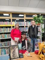 Na niezwykłe spotkanie autorskie, zabrała nas Estera Stefaniak uczennica klasy V Tż do Filii nr 1 Biblioteki Miejsko-Powiatowej w Świdniku 16 października 2025 r. Bartłomiej Sztobryn. autor „Zwiastunki” - historii o dziewczynie, której życie jest puste i pozbawione znaczenia czy „Minerwy 2049” - powieści opisującej wizję przyszłości, w której nikt nie chciałby się znaleźć, (znany jako Szalony Kapelusznik), barwnie opowiadał o swojej pracy, rynku wydawniczym, książkach czy spotkaniach z czytelnikami.